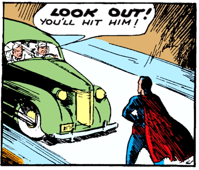 So this is the Superman of June 1938, this reckless jokester who — if you get on his bad side — is liable to beat you to death with your own car. It seems impossible that somebody would be able to keep this erratic story thundering on for another 1,000 issues, but they managed it somehow, and now we’re watching a movie about it.
