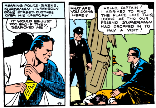 This meet-and-greet is also where we get the first glimpse of the Clark/Superman dual identity, a narrative concept so productive that here we are more than 80 years later, and people are still writing stories about it.