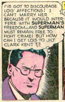 And, as Fleisher also points out in devastating detail, Lois brings out all of the contradictions and indecision in Superman’s psychology, as well. He wants her to fall in love with Clark Kent, but also goes to great lengths to make himself unattractive to her. He relishes the moments when he can dazzle her as Superman and earn her praise and adoration, but then he rejects her in ways that make her visibly unhappy.