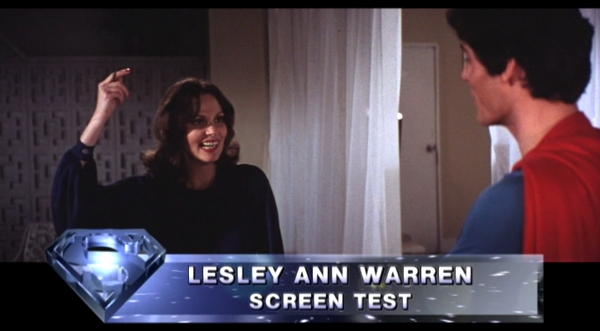 Lesley Ann Warren was the other top choice, and if Margot hadn’t come along then she would have been Lois. From the little bit of the balcony scene that I’ve seen from her screen test, it seems like she’s overplaying it, smiling really broadly and getting very excited, basically broadcasting on all frequencies that this is a thrilling experience.