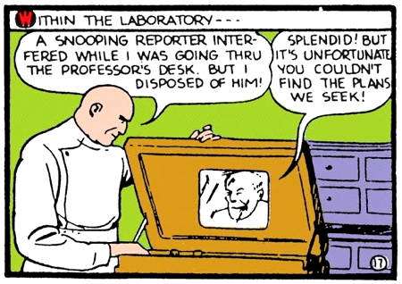 1. Good thing they had the strip as the place to introduce this new design- even in 1940, the writers of the comic book might have felt obligated to waste a panel or two explaining that the interesting-looking bald villain is the same guy as the orange-haired villain their readers had seen several times.