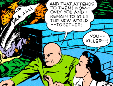 And that’s why — when they brought Luthor back to the comic, in fall 1941 — he was still growing monsters on a jungle island, but he was bald, and he stayed bald. The Ultra-Humanite was already gone and forgotten by then, and anyway, in the last couple appearances, Ultra looked like a female movie star.