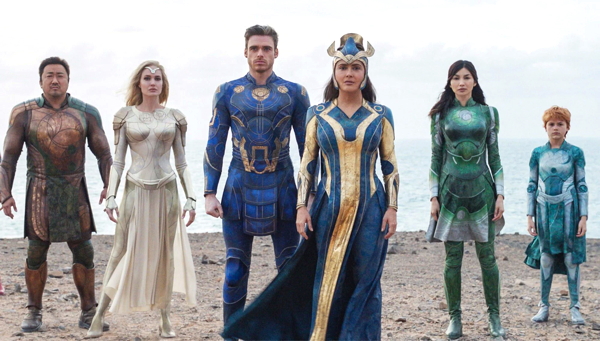 Eternals is the story of a bunch of beautiful rich people from outer space who came to Earth at the dawn of humankind, for an extended adventure vacation. These immortal one-percenters have been walking calmly through the world for thousands of years, untouched and untouchable, gently inspiring human civilization to do things that we probably would have figured out anyway, like how to make tools, and build cities.