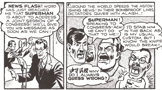 “Superman!” Hitler shouts. “Speaking to Congress! Ach! He can’t do that to me!!”
