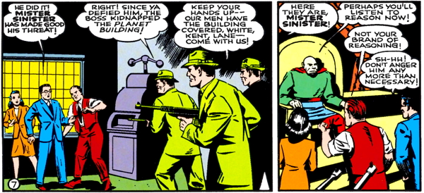 So eventually Mister Sinister just tries to bury Superman in henchmen, and he goes back into rhyming mode.