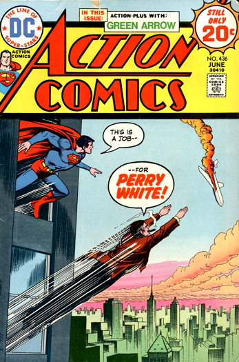 I suppose the cigar is part of the attempt to keep Perry White distinct from Walter Burns. So the cover of Action Comics 436 above, where Perry is flying and smoking, is a thing of beauty.