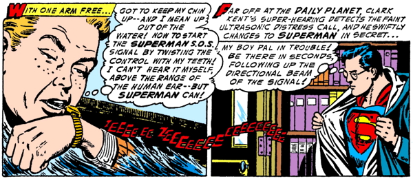 And even more exciting than that, Jimmy also had a secret Superman signal watch that he could use whenever he was in trouble, which transmitted an ultrasonic sound that only Superman could hear. So he was free to be as reckless as he wanted, knowing that an extraterrestrial space angel would show up whenever he needed a favor.
