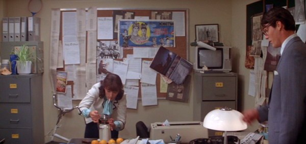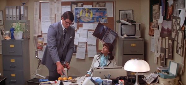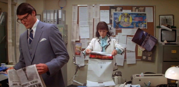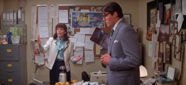 I thought maybe part of Lois having an office was because there were walls. Having walls means not having a bunch of people in the background stuff potentially ruining takes. You can quickly do a different shot without having to pay all the extras and stuff. If you’re in a hurry ditch the extras – it hurts the movie, but if you’re working on budget sometimes you have to give even where it hurts.