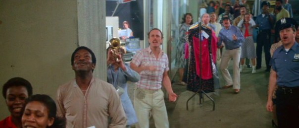 The costumes and hairstyles on those bystanders make the scene look like an AIDS documentary. Come to think of it, the demonstrations of blithe disregard for an immense disaster would also be a cliche in an AIDS documentary.