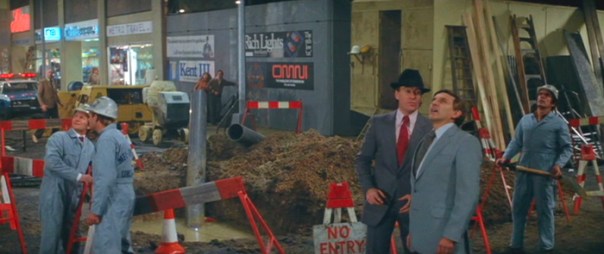 That’s how you know it’s the same block, by the way; you see the same signs in all of these shots. The most visible are the neon signs outside Mike’s Bar, Aristo’s and JVC Electronics, but you also see a lot of the Laugier Trust, and the window display at Fiorucci’s.