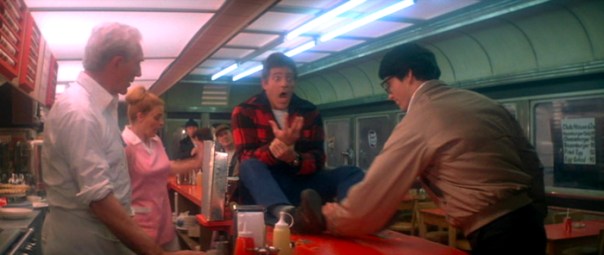 With Lex Luthor and the three Kryptonian villains either imprisoned, abandoned or vaporized, and Lois Lane memory-wiped by an oscular neuralyzer, there’s only one problem left to resolve in the final scenes of Superman II, which is the punishment due to Rocky, a Canadian truck driver who’s mildly insulting when he orders a second plate of food at his favorite diner.