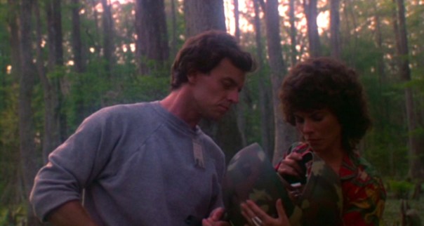 “It wasn’t easy,” she explains in her DVD feature. “We were filming fourteen hour days, when we were in the swamps. I don’t think I slept a night, because I was always sure I had chiggers and ticks crawling up my back, and the stuntmen took great joy in finding whatever boa they could and wrapping it around my neck, you know, whatever snakes they could find. They thought that was great fun.