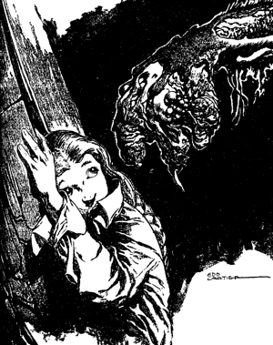 The black and white illustration in this post is from the original Unknown publication. The color panels are from a Marvel adaptation of the story in Supernatural Thrillers #1 (Dec 1972).