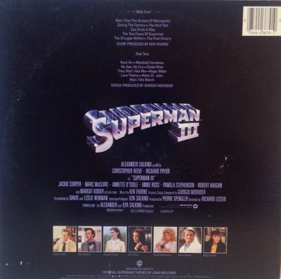 Naturally, the Salkinds wanted a piece of that action, and they hired Giorgio Moroder to write songs for Superman III, which they mostly didn’t use.